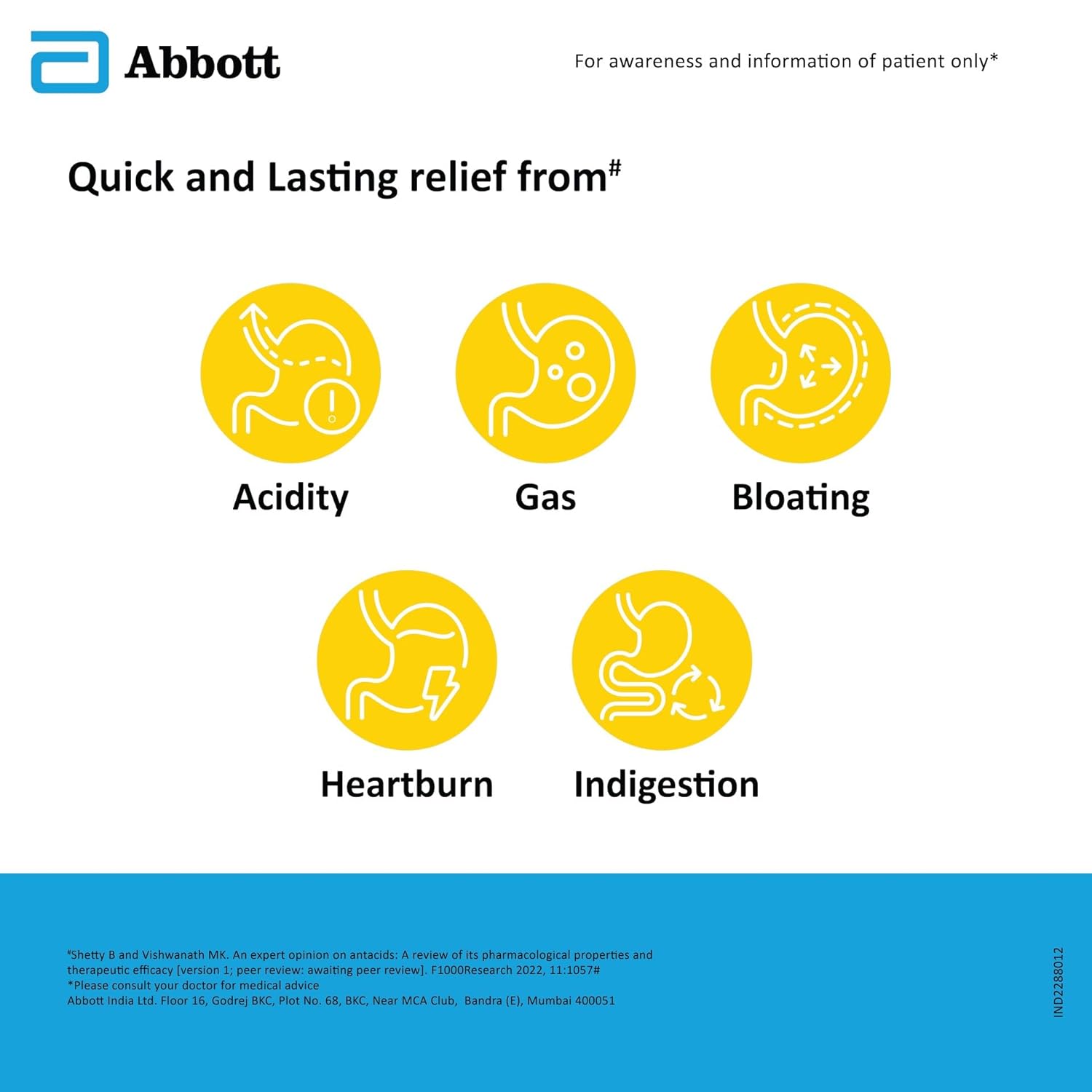 Used for relief from: Acidity, heartburn, gas, bloating, indigestion.